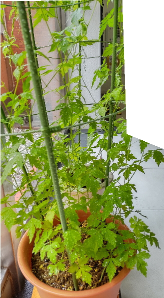 フウセンカヅラは朝顔のように仕立てて、ベランダや玄関先において置くと涼しさが漂います。夏の太陽を浴びて元気いっぱいなので”元気”と”涼しさ”をいただけますね。暇なときに水分補給は霧吹きをしてあげると涼しさ倍増ですね。また、涼みながらのTeaTimeはとってもくつろげます。贅沢な時間をいただけますね。